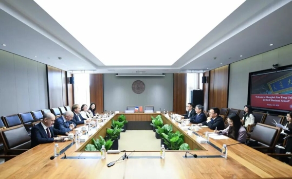 10月23日上午,法国凯致商学院(KEDGE Business School)校长亚历山大·德纳维耶(Alexandre de NAVAILLES)率代表团访问上海交通大学,与上海交通大学校长丁奎岭在闵行校区举行了富有成效的会谈,双方围绕深化中法教育合作、推动人才培养等议题开展座谈交流。