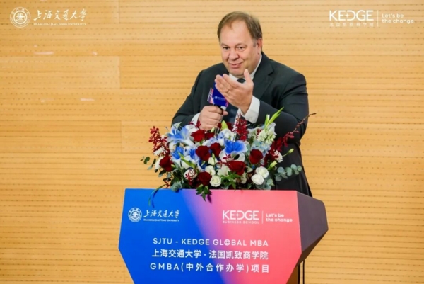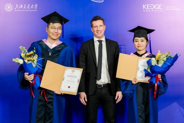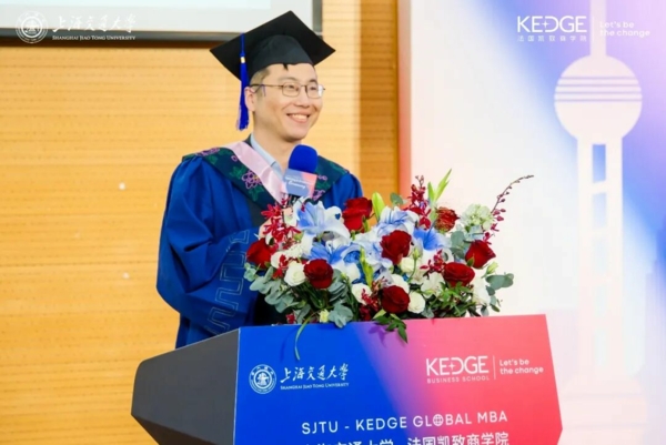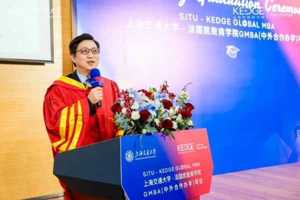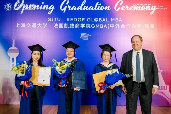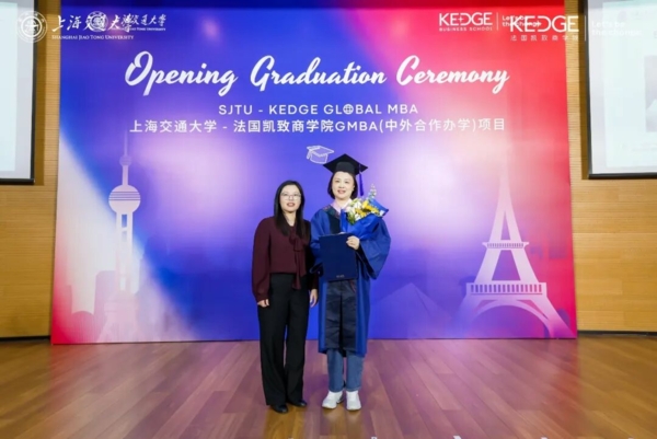 3月21日,上海交通大学-法国凯致商学院国际在职工商管理硕士(中外合作办学)项目(SJTU-KEDGE Global MBA Programme)2025届毕业典礼暨2025级开学典礼在上海交通大学徐汇校区隆重举行。两校领导、教授代表、学术代表、校友代表和业界嘉宾们齐聚一堂,与毕业生们和新生们共同见证这一承载理想与使命的重要时刻。