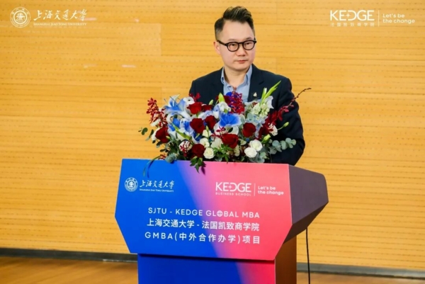 他表示,选择上海交通大学与法国凯致商学院合作举办的GMBA项目,就是用理性对抗浮躁、用长期主义对抗短期焦虑,甘愿用两年时光搭建系统的商业认知体系。他代表新生发出倡议,以上海交大的厚重为锚、以法国凯致的锐气为帆,在不断变化的时代中共同成长,两年后遇见更有格局、更有力量的自己。整场发言以“选择”、“归零”、“同行”三个关键词串联,展现了新生对学业的热忱与对未来的坚定期许。